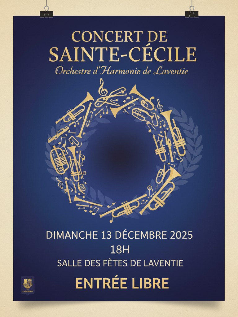 L'harmonie de Laventie donnera son concert de Sainte-Cécile le dimanche 13 décembre 2025 à 18h à la salle des fêtes de Laventie.